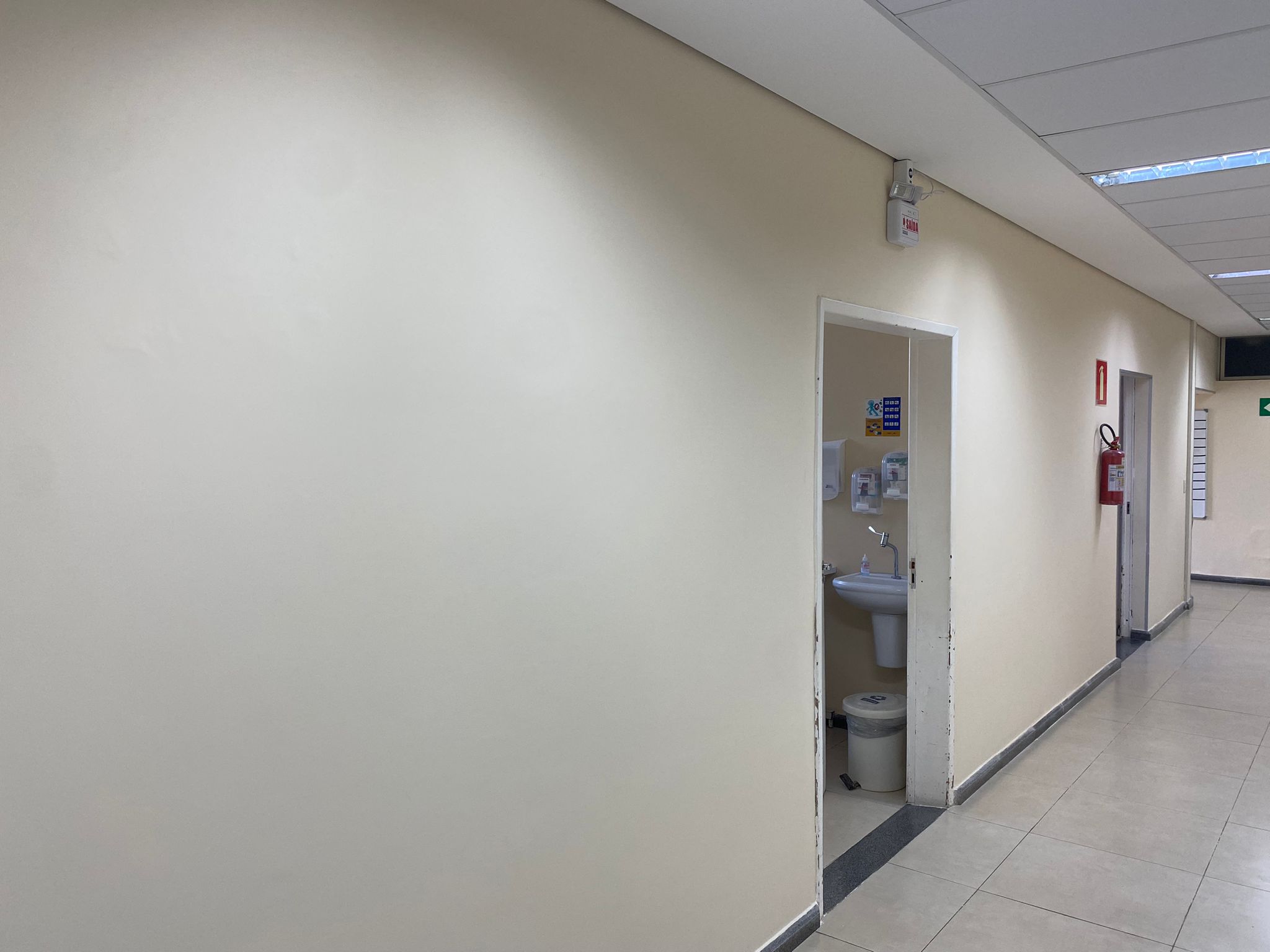 Revitalização do ambiente através de recuperação de imperfeições na alvenaria com argamassa, impermeabilização da parede, acabamento da superfície com massa corrida e finalização com tinta acrílica lavável de acordo com Norma hospitalar. Foi realizada a recuperação de portas e bate macas com massa acrílica especial e pintura com tinta acetinada.